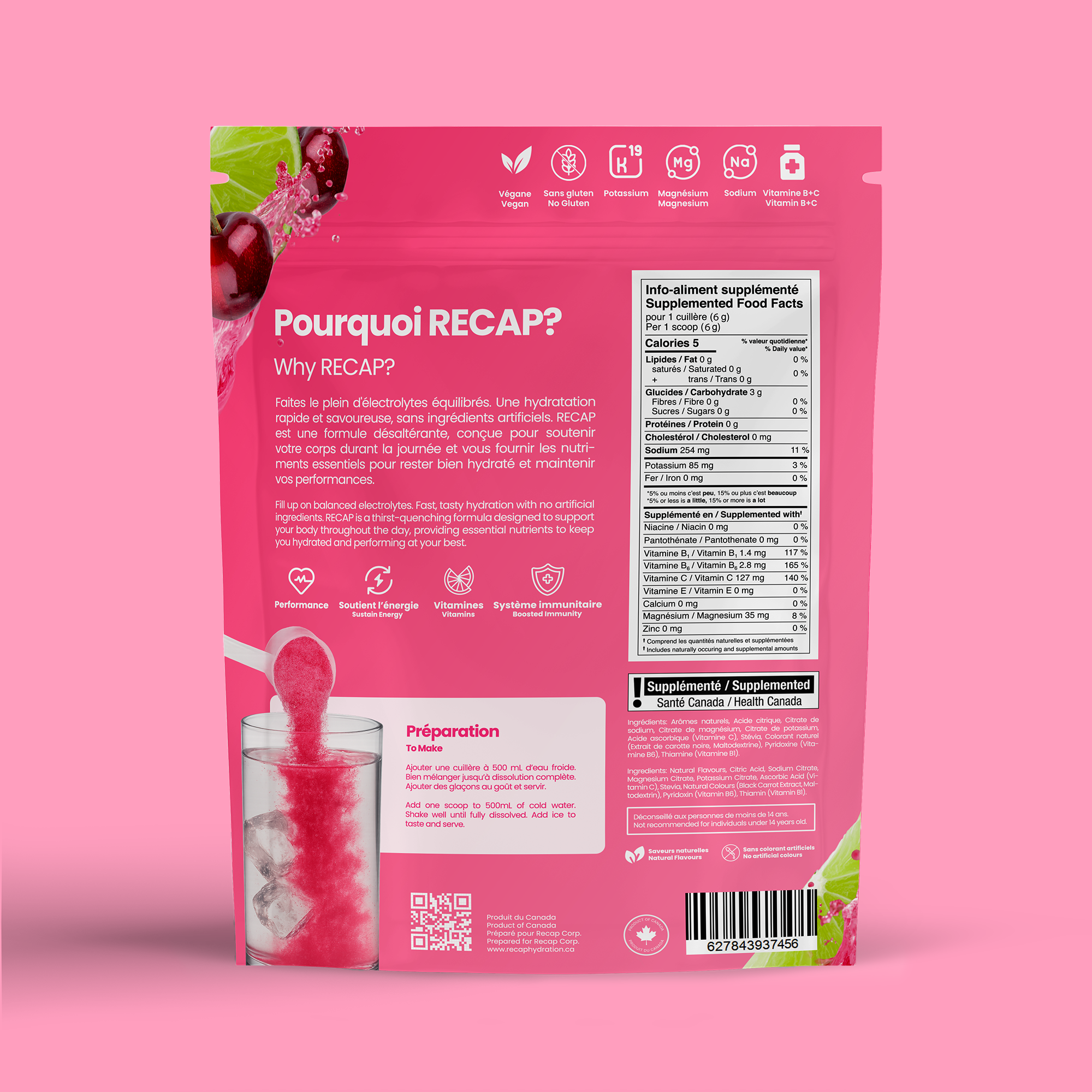 Recap :Moins de 1,50 $ par portion pour une hydratation réellement optimale.