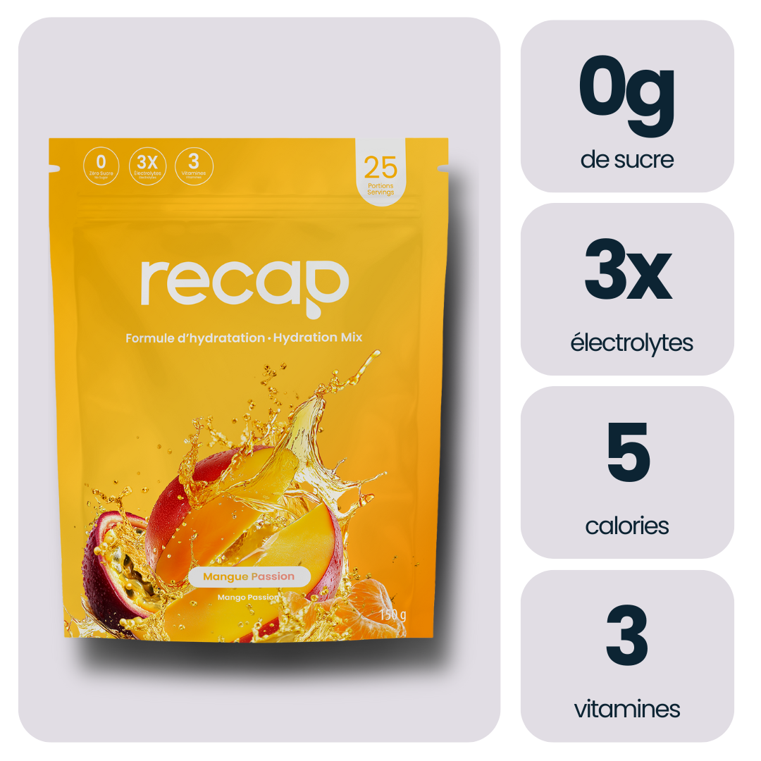 Recap :Moins de 1,50 $ par portion pour une hydratation réellement optimale.